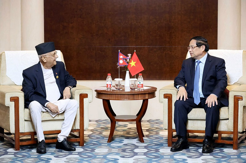 काठमाडौं । प्रधानमन्त्री केपी शर्मा ओली र समाजवादी गणतन्त्र भियतनामका समकक्षी फाम मिन चिङबीच चीनको थियानजिनमा भेटवार्ता भएको छ ।